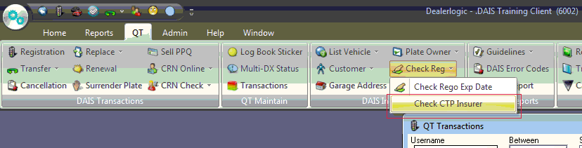 If you want to confirm the current CTP insurer and Class for a recently acquired vehicle process a check CTP insurer transaction. You are only able to check this information on vehicles that are owned by the dealership however, so they must have been acquired previously. They also need to be currently registered (so the registration can’t have expired, or been cancelled) 1.Open the Check CTP insurer transaction 2.Select stock vehicle, and enter the stock number or select Plate Only and enter the plate and select the state 3.Click send The current CTP insurer will be returned as recorded on TRAILS, you will also be provided with the CTP class and the current Purpose of Use. If the CTP class is not correct, or not relevant for Dealer POU – the send through a correction request to have this updated. Only changes to CTP class can be made this way – please see here for instruction on how to do this. |